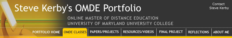 This was first course I took at UMUC. I started out a bit frustrated with what I thought then to be the limits of how we were to define distance education. I thought that our textbook, Distance Education: A Systems View by Moore and Kearsley (1996) was, by virtue of its publication date, out of date, not being able to take into account the recent explosion of online technologies.